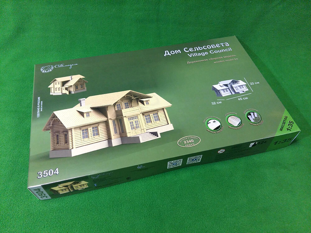 3504 СВ Модель Деревянная сборная модель Дом Сельсовета в масштабе 1/35Такие строения часто можно было увидеть в 20-х - 50-х годах прошлого века в крупных селах и небольших городах, а возможно, некоторые сохранились и до наших дней. Как правило, такие зда
