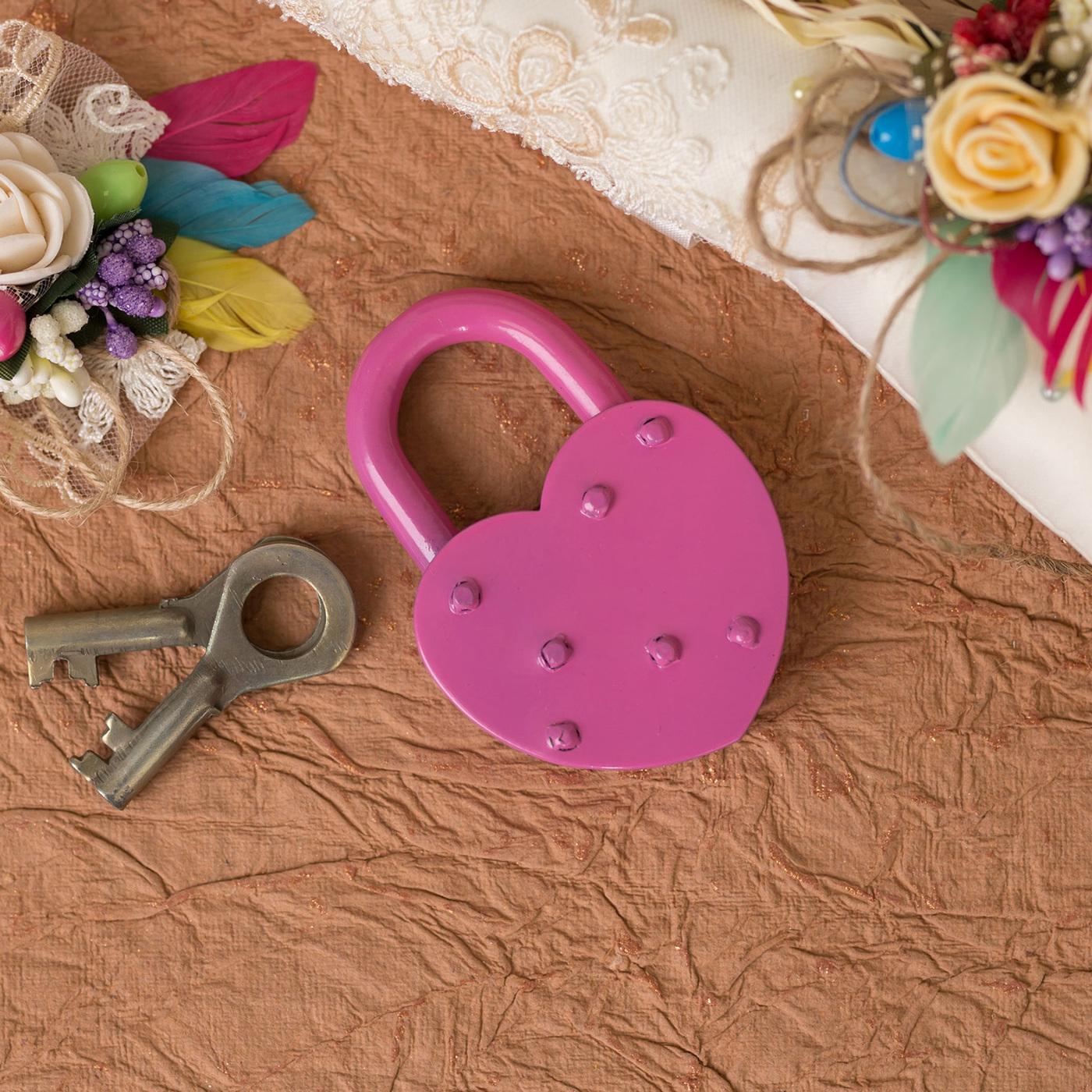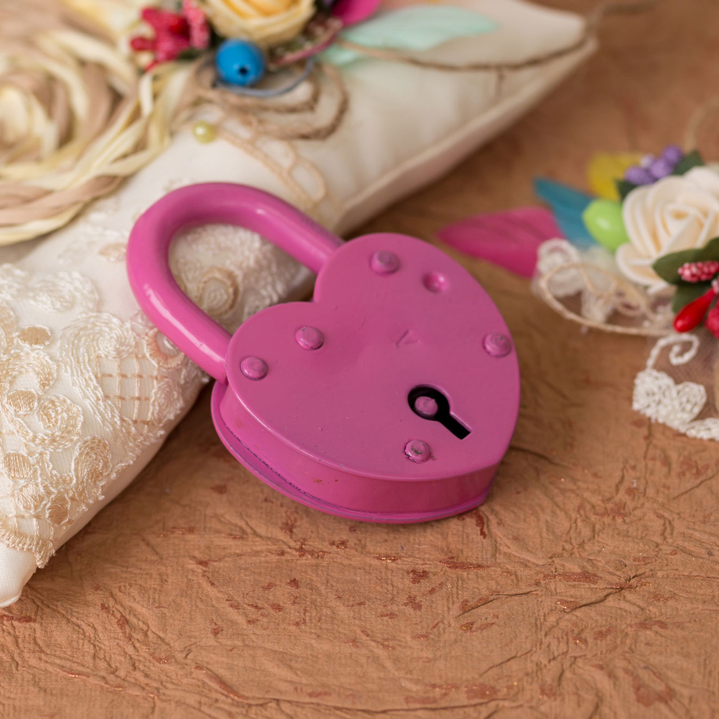 Небольшой свадебный амбарный замочек розового цвета выполнен в виде сердечка с двумя ключами в комплекте. Этот аксессуар обычно используется молодоженами во время прогулки после ЗАГСа — по традиции новобрачные вешают его в красивом месте, чтобы символичес
