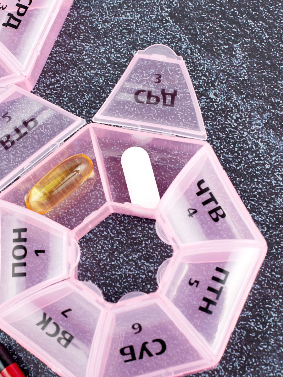 Теперь вы не забудете принять витамины или таблетки в течение дня: удобная и функциональная таблетница поможет распределить приём нужных препаратов по дням недели и вовремя вспомнить о них. Таблетница разделена на секции, в каждую из которых вы сможете по