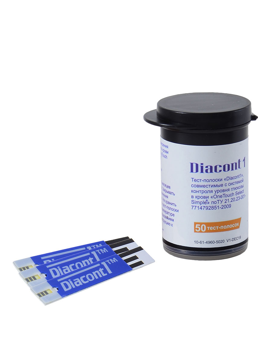«Тест-полоски «Diacont1», совместимые с системами контроля уровня глюкозы в крови OneTouch Select и OneTouch Select Simple®. Предназначены для самоконтроля больных сахарным диабетом в домашних условиях и для медицинских работников в клинической практике д