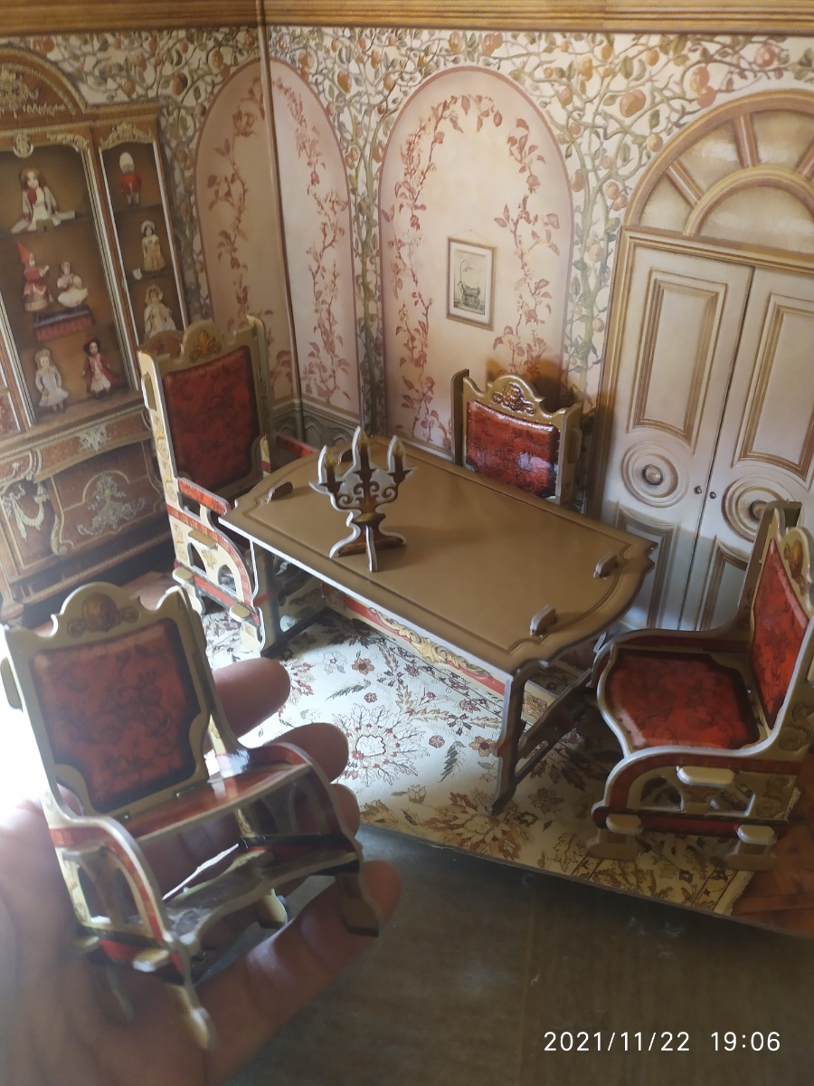 Материал: картонЧисло деталей: 26 шт.Сборка без клея.Стол 1 шт 7*12*6,5 см. Стул 3 шт 5*59 см. Кресло1 шт 5*5*6,5 см.