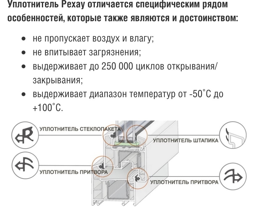 Оконный уплотнитель Rehau произведен из синтетического каучука EPDM. Уплотнитель применяется для ремонта пластиковых окон и дверей из профилей: KBE, Rehau, Veka, Proplex, Krauss, Montblanc, Exprof, Novotex, Kaleva, Brusbox и их аналогов. Учитывая тот факт