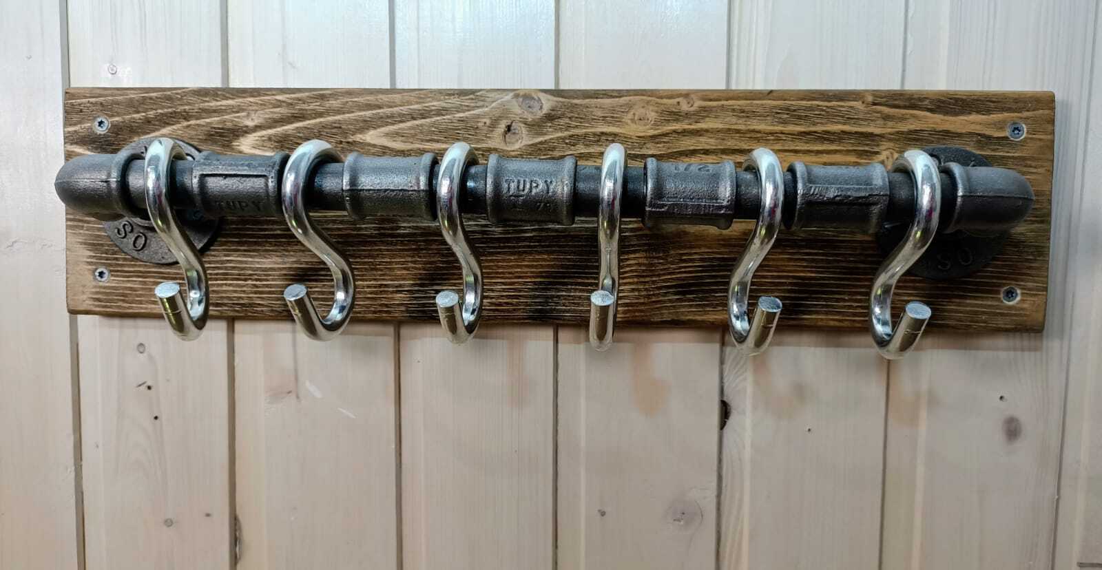 Настенная вешалка из труб в стиле лофт / индастриал ( Loft / Industrial )Настенная вешалка для одежды в индустриальном стиле / в стиле лофт изготовлена из чугунных труб устойчивых к коррозии. Стальные крючья.Для ванной, кухни или прихожей. Брутальный инди