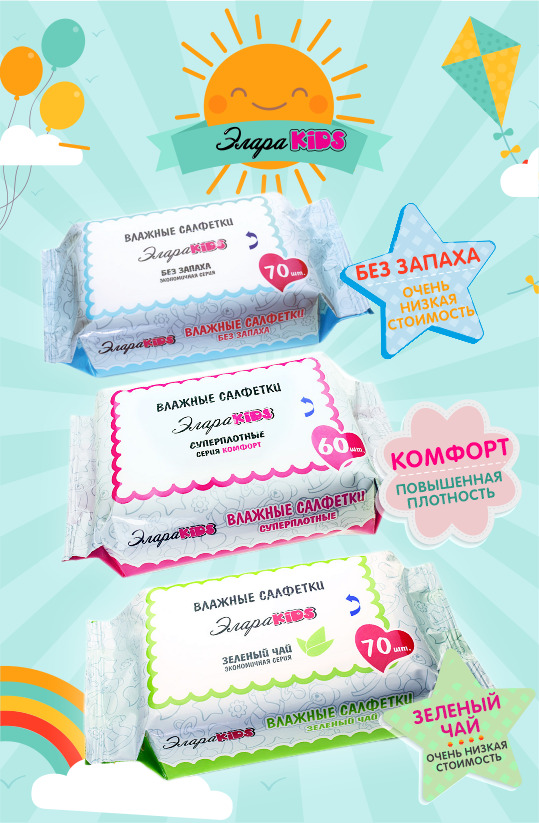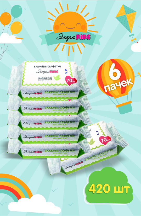 Влажные салфетки ЭлараKIDS Зелёный чай, изготавливаются из гипоаллергенных материалов и не содержат спирта. Салфетки бережно очищают, обеспечивают качественное увлажнение, сохраняя чистой и здоровой кожу и подходят даже малышам. А экстракт Зелёного Чая бе