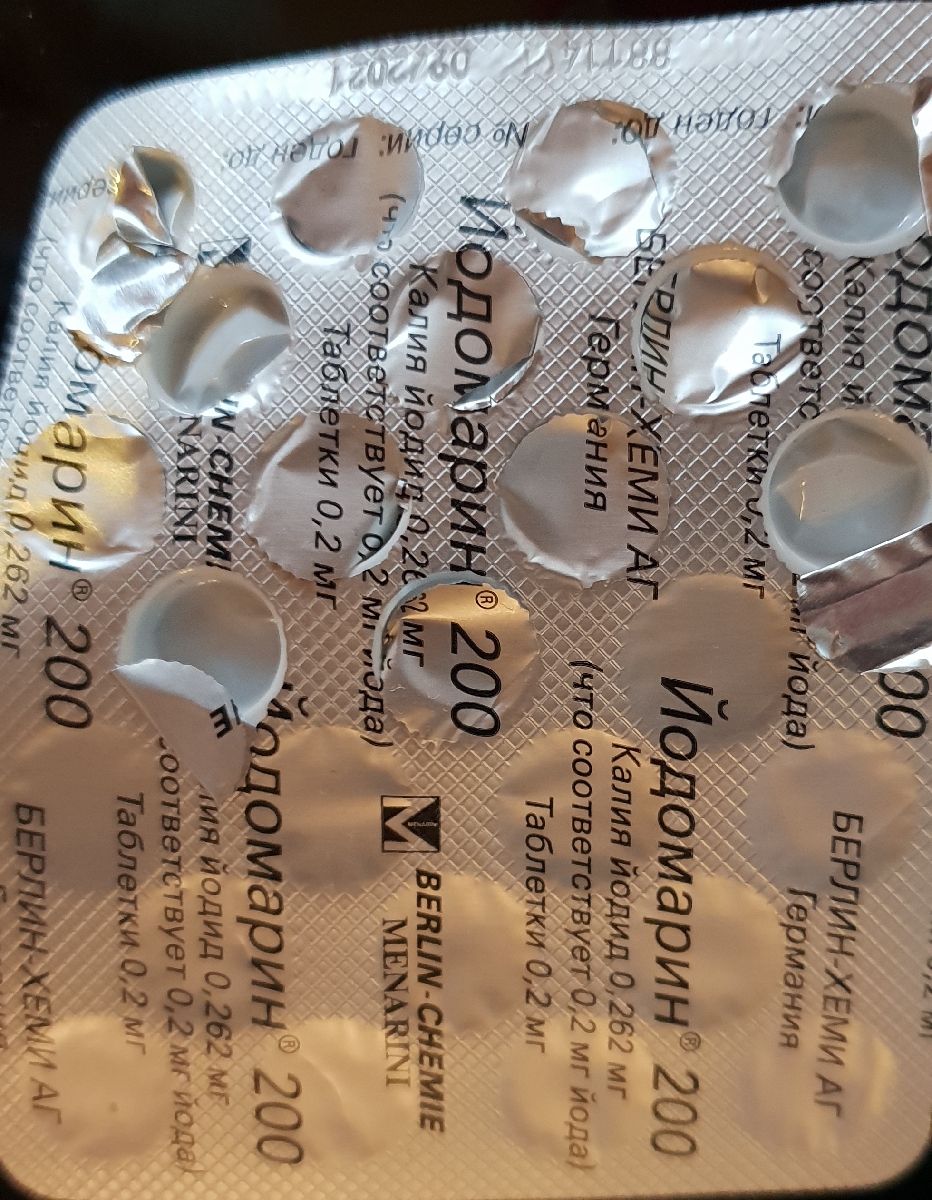 Способ примененияПрофилактика эндемического зоба Дети (с 1 года до 12 лет): ½ таблетки Йодомарина® 200 в сутки (что соответствует 100 мкг йода). Дети старше 12 лет и взрослые: ½ - 1 таблетка Йодомарина® 200 в сутки (что соответствует 100-200 мкг йода). Период беременности