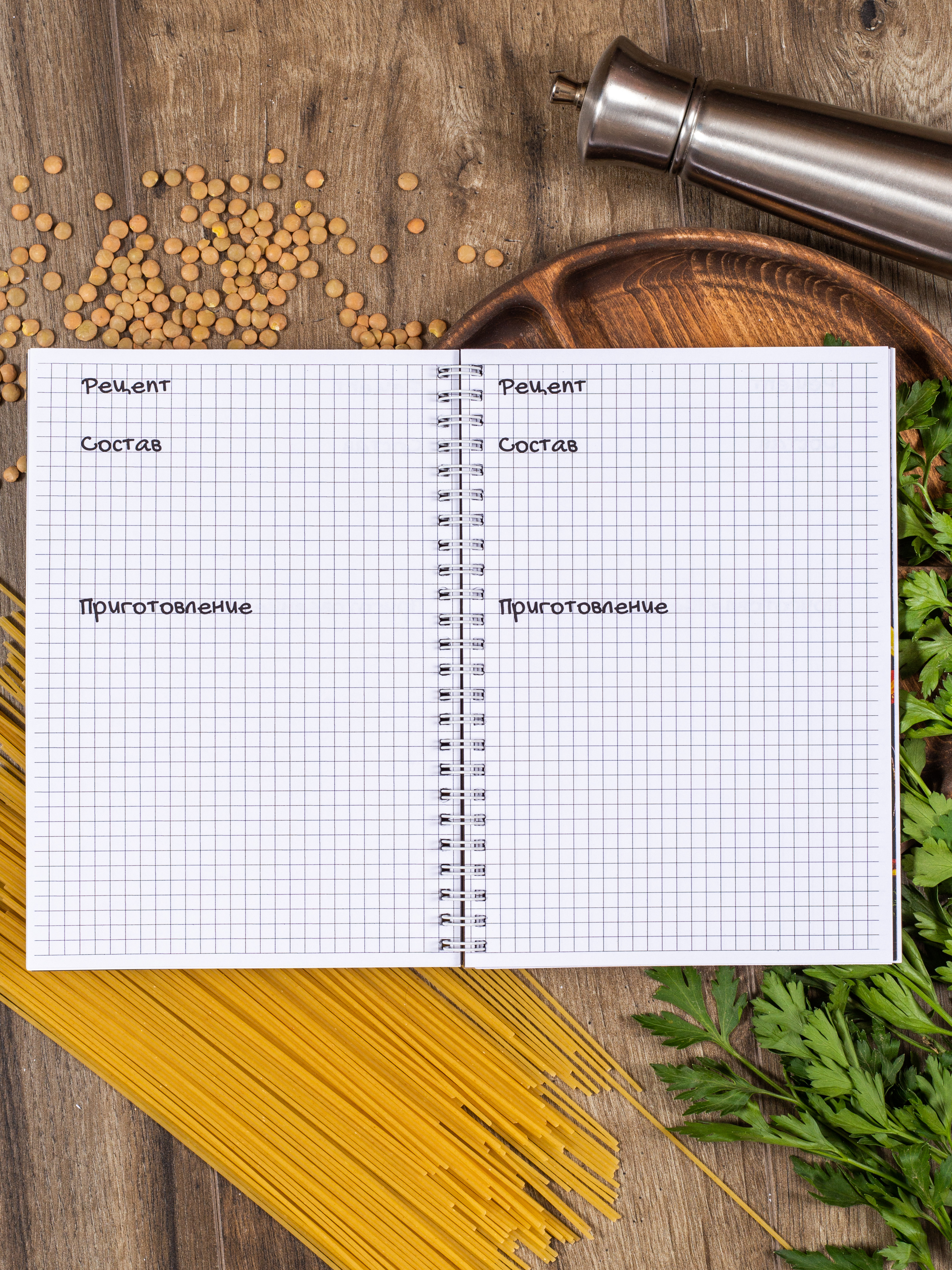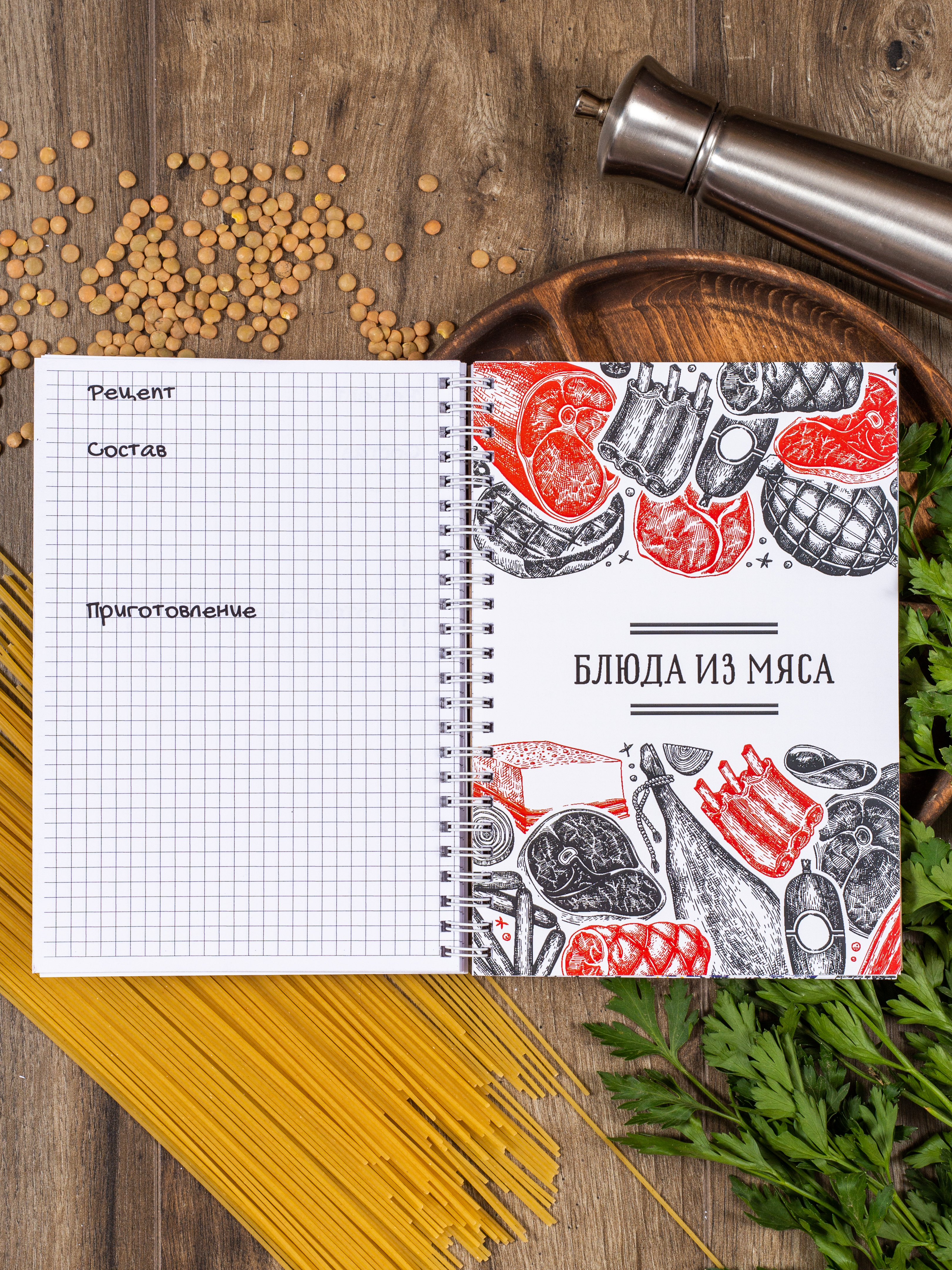 Формат А5, 52 листа, 4 раздела + доп. листы для записей. Если вы хотите, чтобы все ваши любимые рецепты хранились в одном месте, блокнот для записи своих рецептов точно для вас. Это кулинарный блокнот для записей вкусных рецептов сделан с вниманием к дета