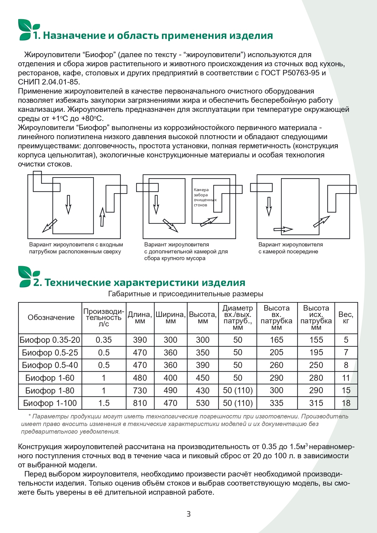 Комплектация:жироуловитель, тех-паспортОписание:Жироуловитель Биофор Универсал 25 л компактен и имеет возможность подключения входного патрубка в верхней части жироуловителя. Жироуловители под мойку Биофор используются для отделения и сбора жиров растител