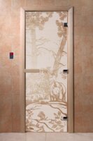 Дверь для сауны DoorWood (Дорвуд) 70x200 Основная серия Мишки в лесу (бронза)