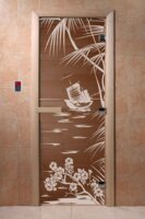 Дверь для сауны DoorWood (Дорвуд) 70x180 Основная серия Бамбук и бабочки (бронза)