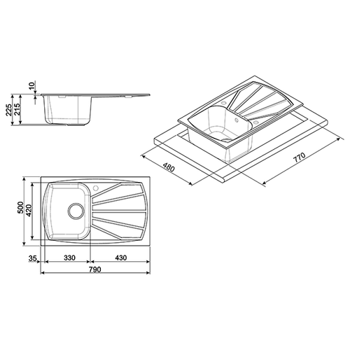 Врезная кухонная мойка Longran Lotus LTL 950.500 15